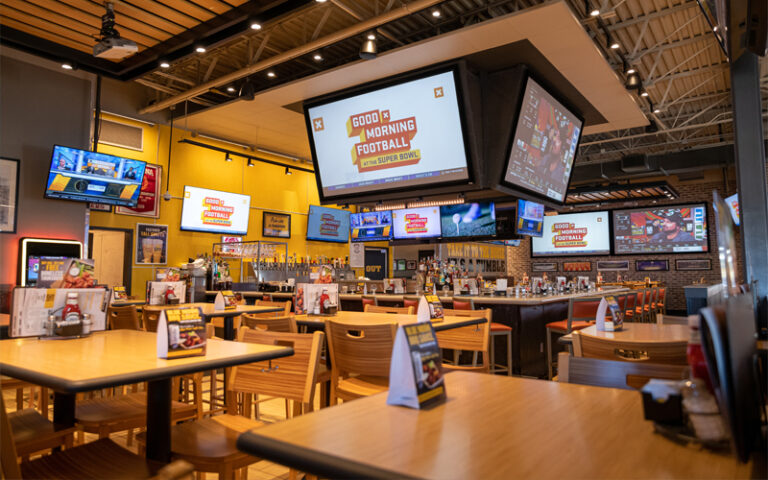 We have built and renovated four Buffalo Wild Wings in our surrounding area. This location was a new building, approximately 7,346 square feet, with a total seating capacity of 274. Buffalo Wild Wings developed Stadia Design, which aims to capture the energy of a stadium. The design created space for families and a great place to watch sports.