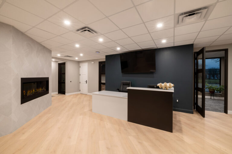 Clarity Financial was a complete interior remodel boy Ancon’s Small Projects Division of an existing 2-story building in Mishawaka, IN. The existing interior was demolished and revamped to offer a modern look. The space is equipped with 8′ birch wood doors, spacious offices and conference rooms to meet with clients, and a coffee bar for welcomed visitors.