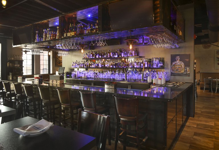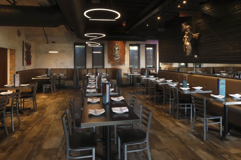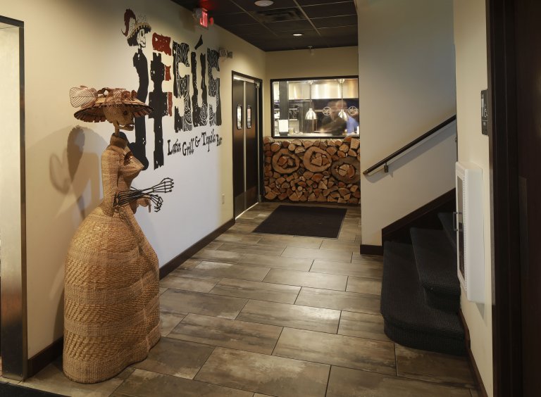 Jesus Latin Grill & Tequila Bar is 8,300 square feet and is located in the former Carnegie Library. The building was renovated and restored. The property features a dining area, bar/lounge, and an outdoor patio surrounded by gabion rock walls. There is also an upstairs ballroom and an additional lounge space. The interior architecture blends the historic nature of the former library and modern Latin design and decor.