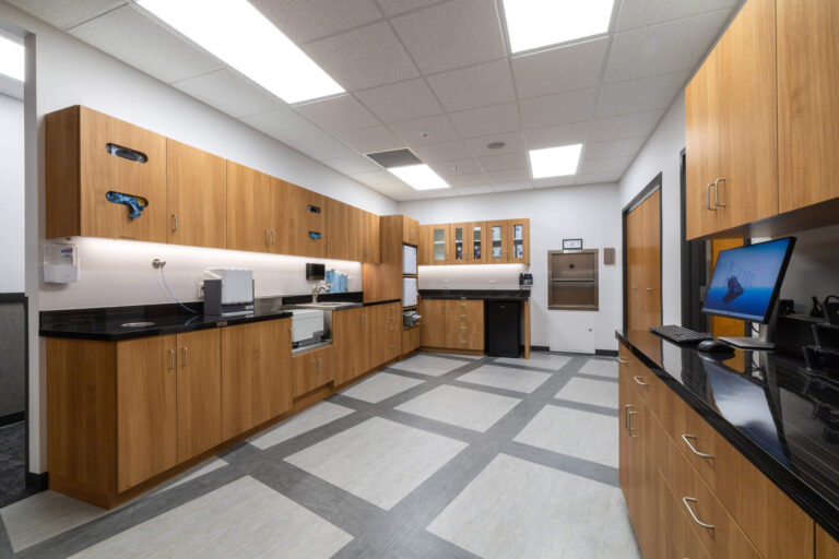 Ancon Construction designed and built a new 6,581-square-foot, two-story dentist office for Aegis Dental Group. Ancon used the Integrated Design-Build™ delivery method to complete this project. The two-story lobby features numerous seating areas, a fireplace, a coffee bar, and self-serve check-in kiosks. The architectural elements include a mass timber roof structure with cladded ceilings and floor-to-ceiling windows.